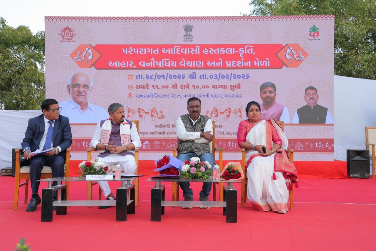 અમદાવાદ, સંજીવ રાજપૂત, એબીએનએસ: આદિજાતિ વિકાસ મંત્રી નરેશભાઈ પટેલના વરદ હસ્તે ‘પરંપરાગત આદિવાસી હસ્તકલાકૃતિ, આહાર, વનૌષધિય વેચાણ અને પ્રદર્શન મેળા’નું ઉદ્ઘાટન સાબરમતી રિવરફ્રન્ટ, અમદાવાદ ખાતે કરવામાં આવ્યું હતું. આદિજાતિ વિભાગ હેઠળ કાર્યરત ગુજરાત આદિવાસી સંશોધન અને તાલીમ સોસાયટી દ્વારા આયોજિત આ વેચાણ અને પ્રદર્શન મેળો આગામી તા. ૦૩ ફેબ્રુઆરી સુધી યોજાશે.