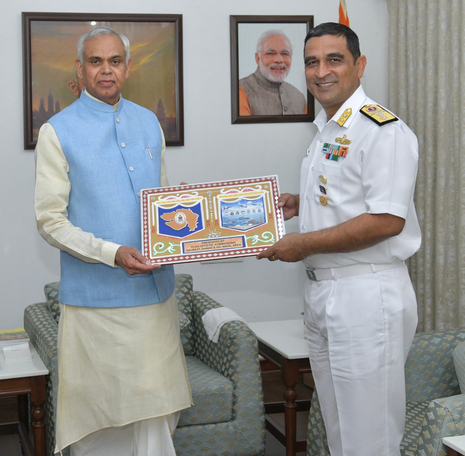 ગાંધીનગર, સંજીવ રાજપૂત, એબીએનએસ: ફ્લૅગ ઓફિસર ગુજરાત, દમણ અને દીવ નેવલ એરિયા, રિયર એડમિરલ શ્રીતનુ ગુરુએ આજે ગુજરાત લોકભવનમાં રાજ્યપાલ આચાર્ય દેવવ્રતજી સાથે શુભેચ્છા મુલાકાત લીધી હતી.