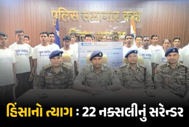 Naxalites Surrender in Chhattisgarh : ભારતને નક્સલમુક્ત બનાવવાના અભિયાનમાં સુરક્ષાબળોને મોટી સફળતા મળી છે. છત્તીસગઢના નક્સલ પ્રભાવિત સુકમા જિલ્લામાં મંગળવારે એક મહિલા સહિત કુલ 22 નક્સલીઓએ હિંસાનો માર્ગ છોડી સુરક્ષાબળો સમક્ષ આત્મસમર્પણ કર્યું છે. આ ઘટનાને નક્સલવાદ વિરુદ્ધના જંગમાં એક નિર્ણાયક સિદ્ધી માનવામાં આવી રહી છે.