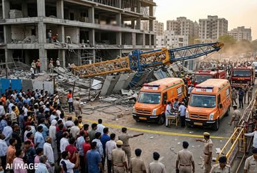 અમદાવાદમાં ઇસ્કોન-આંબલી રોડ પર મોટી દુર્ઘટના, ક્રેનનો કેબલ તૂટતા બે શ્રમિકો પટકાયા, એકનું મોત | Cons…