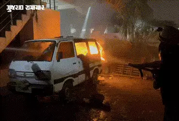 પાર્ક કરેલી કારમાં અચાનક આગ ભભૂકી, 4 લોકો દાઝ્યા