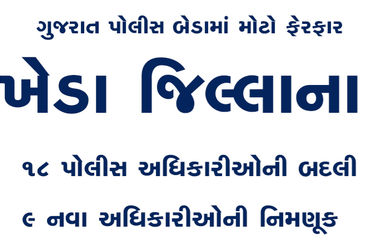 ગુજરાત રાજ્ય પોલીસ ભવન દ્વારા જારી કરવામાં આવેલા તાજેતરના આદેશો મુજબ, ખેડા જિલ્લામાં ફરજ બજાવતા બિનહથિયારી પોલીસ ઇન્સ્પેક્ટરો અને સબ ઇન્સ્પેક્ટરોની કામગીરીની દિશા બદલાઈ છે. ખેડા જિલ્લામાંથી બદલી પામેલા અધિકારીઓમાં કે.કે. ઝાલા અને કે.આર. વેકરીયા જેવા પોલીસ ઇન્સ્પેક્ટરોને અમદાવાદ શહેર ખાતે જવાબદારી સોંપવામાં આવી છે. આ ઉપરાંત એ.આર. ચૌધરીને પણ અમદાવાદ શહેર અને ડી.એન. ચુડાસમાને વડોદરા શહેર ખાતે મોકલવામાં આવ્યા છે. સુરત શહેર ખાતે કે.ડી. ભીમાણી અને વી.ડી. મંડોરાની બદલી કરવામાં આવી છે, જ્યારે પી.એસ. બરંડાને છોટા ઉદેપુર અને આર.એન. ખાંટને સાયબર સેન્ટર ઓફ એક્સેલન્સમાં મહત્વની જવાબદારી સોંપાઈ છે. સબ ઇન્સ્પેક્ટર કક્ષાએ પણ ખેડા જિલ્લામાં મોટી ઉથલપાથલ જોવા મળી છે. જિલ્લામાં કાર્યરત વિધિ શશીકાન્ત પરમારને સાયબર સેન્ટર ખાતે બદલવામાં આવ્યા છે તો જયેશભાઇ વકમતભાઇ વાઢીયાને રાજકોટ શહેરની જવાબદારી સોંપવામાં આવી છે. મહેસાણા ખાતે અંકુશ મનોજભાઇ ગેલોત અને છોટા ઉદેપુર ખાતે હેતલબેન માલજીભાઇ રબારીની નિમણૂંક કરવામાં આવી છે.
