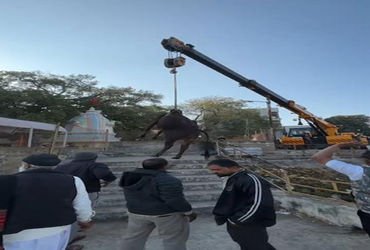 બંને ગાયોને ક્રેનની મદદથી બહાર કાઢવામાં આવી