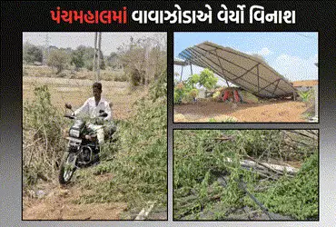Panchmahal News: મંગળવારે બપોર બાદ પંચમહાલ જિલ્લાના શહેરા તાલુકામાં અચાનક હવામાન પલટાયું હતું અને વાવાઝોડા સાથે ત્રાટકેલા તોફાની વરસાદે ભારે તબાહી મચાવી છે. આ આકાશી આફતે કુદરતનું રૌદ્ર સ્વરૂપ બતાવ્યું છે, જેમાં અત્યાર સુધીના અહેવાલો મુજબ બે નિર્દોષ લોકોના મોત થયા છે. કુદરતી પ્રકોપને કારણે સમગ્ર તાલુકામાં જનજીવન અસ્તવ્યસ્ત થઈ ગયું છે અને મકાનો તેમજ ખેતીવાડીને મોટું નુકસાન પહોંચ્યું છે.
