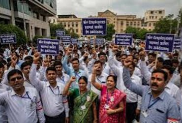 કર્મચારીઓએ અમદાવાદના ઇન્દુચાચાના સ્ટેચ્યુથી લઈને આશ્રમ રોડ પર વલ્લભ સદન સુધી રેલી
