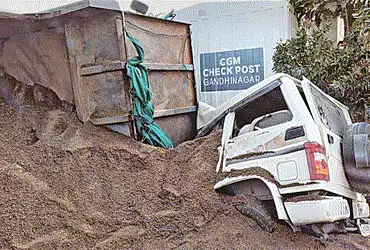 ચેકપોસ્ટ ઉપર આખે આખું રેતી ભરેલું ડમ્પર જ પલટી ખાઈ ગયું હોવાની ઘટના બહાર આવી