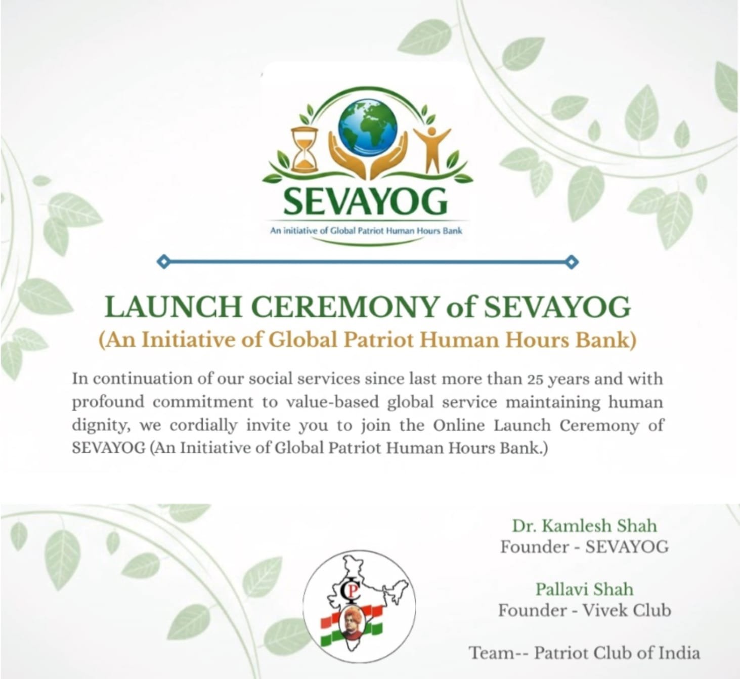(Global Patriot Human Hours Bank) નો વડોદરા ખાતે પ્રારંભ કરવામાં આવ્યો છે.