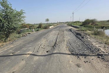 ફેરવાઈ ગયો છે. આશરે બે કિલોમીટરના અંતર સુધી માર્ગ પર મોટા ખાડાઓ પડી જતાં વાહન