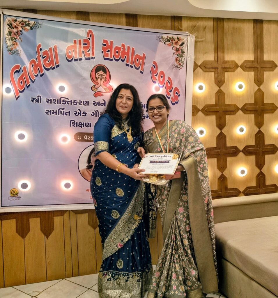 સમાજમાં તથા મહિલાઓના વિકાસ અને અધિકાર અર્થે કાયમી તત્પર રહેતા કિંજલબેન પંચાલનું ‘માહી ઉડાન ફાઉન્ડેશન’ દ્વારા આયોજિત તારીખ : ૦૭/૦૨/૨૦૨૬ના રોજ નિર્ભયા નારી સન્માન કરવામાં આવ્યું હતું.