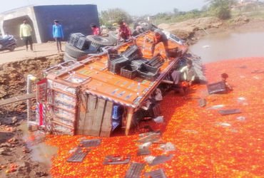 આ સ્થળે કેનાલનું પાણી ભરાયેલું હોવાથી આસપાસની માટી અત્યંત પોચી પડી ગઈ હતી. બુધવારની સાંજે આ માર્ગ પરથી ૭૪૧ કેરેટ ટામેટા ભરીને એક ટ્રક પસાર થઈ રહી હતી, ત્યારે અચાનક રોડની સાઈડની માટી ધસી પડી હતી. માટી ધસતાની સાથે જ ટ્રક સીધી ઊંડા પાણી ભરેલા કાંસમાં ખાબકી હતી. ટ્રક પલટી મારી જતાં તેમાં ભરેલા તમામ ટામેટા પાણીમાં વેરાઈ ગયા હતા. અકસ્માતને પગલે આસપાસના લોકો તાત્કાલિક ઘટનાસ્થળે દોડી આવ્યા હતા. સદનસીબે ટ્રક ચાલક અને તેમાં સવાર મજૂરો સમયસર બહાર નીકળી જવામાં સફળ રહ્યા હતા, જેથી મોટી જાનહાનિ ટળી હતી. જોકે, ટામેટાનો આખો જથ્થો બગડી જતાં ખેડૂતને ભારે આથક ફટકો પડયો છે.