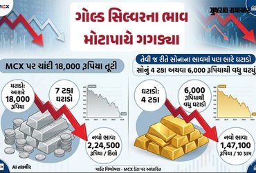 મલ્ટી કોમોડિટી માર્કેટ (MCX) પર ગુરુવારે ચાંદીના ભાવમાં આશરે 18,000 રૂપિયા અથવા 7 ટકાનો ઘટાડો થયો હતો, જેના કારણે તે પ્રતિ કિલો 2,24,500 રૂપિયા પર આવી ગઈ. તેવી જ રીતે સોનાના ભાવમાં પણ ભારે ઘટાડો જોવા મળ્યો હતો. સોનું 4 ટકા અથવા 6,000 રૂપિયાથી વધુ ઘટીને 1,47,100 રૂપિયા પ્રતિ 10 ગ્રામ પર આવી ગયું છે.