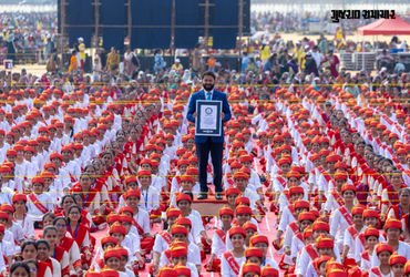 Largest Simultaneous Hindu Text Recital – ‘હિન્દુ ગ્રંથના સૌથી વિરાટ સમૂહગાન’ બદલ મહોત્સવમાં ઈંગ્લેન્ડથી પધારેલા ગિનિસ વર્લ્ડ રેકોર્ડસના અધિકારી દ્વારા મહંત સ્વામી મહારાજનું બહુમાન કરવામાં આવ્યું હતું.