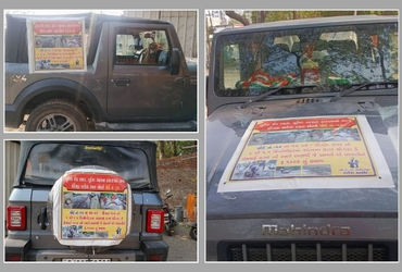 કાર પર બેનરો લગાવી અનોખો દેખાવ