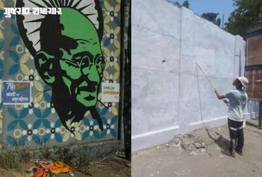 Surat News : સુરત પાલિકાની ચૂંટણી પહેલાં ભાજપ કાર્યાલયનો પાર્કિંગમાં સરદાર સાહેબની પ્રતિમાનો વિવાદ હજી શમ્યો નથી, ત્યાં શહેરના મક્કાઈપુલ ખાતે પાલિકાના સ્વિમિંગ પુલની દિવાલ પરથી મહાત્મા ગાંધીજીનું ચિત્ર ગાયબ કરી દેવાયું છે. આગામી દિવસોમાં સ્વચ્છતા સર્વેક્ષણ ટીમ આવી રહી છે, ત્યારે સ્વચ્છતા સર્વેક્ષણ માટે ગાંધીજીનું ચિત્ર ગાયબ કરવામાં આવ્યું છે અને તેની જગ્યાએ સ્વિમિંગ પુલનું ચિત્ર બનાવવા માટેની કામગીરી શરુ કરવામાં આવી છે. ગાંધીજીનું પેઈન્ટિંગ હટાવી દેવાતા હવે બીજો વિવાદ ઉભો થયો છે.